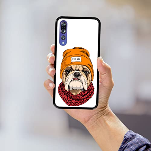 Custodia per [ Huawei P20 PRO - P20 Plus ] Disegni [ Ritratto del Bulldog Hipster ] Cover Guscio in Silicone Flessibile Nero TPU