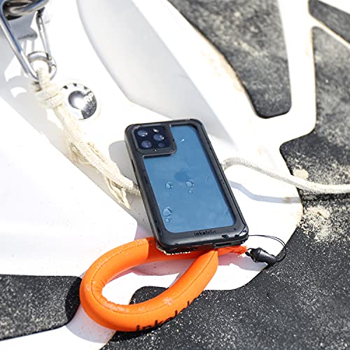 Custodia Impermeabile iPhone 12 Pro Max Cover IP68 Certificato Protettiva Caso Cover Antiurto Subacquea Custodie con Cinturino Galleggiante [Aqua Shield] per iPhone 12 Pro Max (nero opaco/arancione)