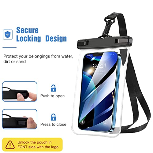 Chiusura di sicurezza: Le caratteristiche di questo Sacchetto Impermeabile Cellulare includono un semplice scatto per bloccare il canale per garantire una perfetta tenuta. I bordi completamente chiusi forniscono una protezione più sicura per la custodia impermeabile, rendendola più resistente delle normali custodie impermeabili.