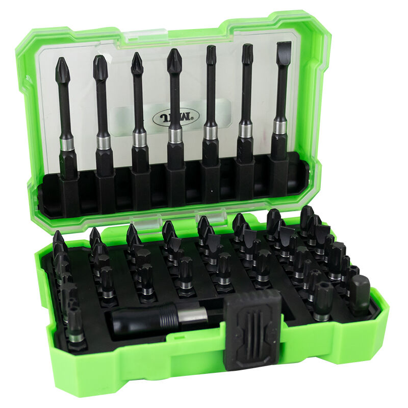 Materiale: acciaio S2, ossido nero con finiture, standard DIN Include: 49 punte a percussione da 25 mm: PH1*3, PH2*3, PH3*3 PZ1*3, PZ2*3, PZ3*3 SL4*2, SL5*2, SL6 *2H:3,4,5