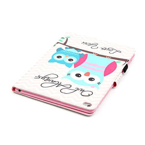 Custodia per iPad Air 2, Deenor Colorful Painting and Stylish Drawing Wallet Case Book Style PU Pelle Flip Protective Stand Custodia Cover per Apple iPad Air 2 iPad 6 Generation. (Mother and child owl)
