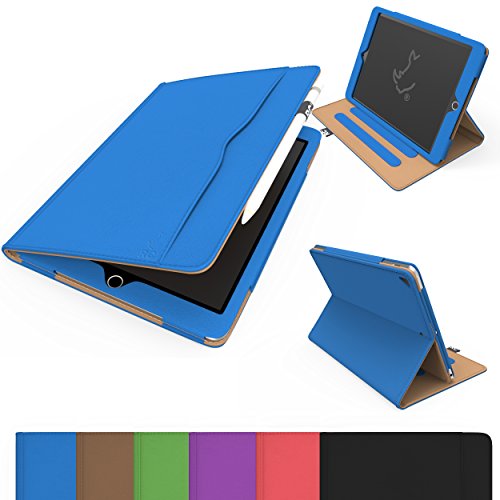 Custodia per iPad Pro 9.7, esecutivo astuta Folio - copertura del cuoio del Faux caso per Apple iPad Pro 9.7 pollici (Blu e Abbronzatura)