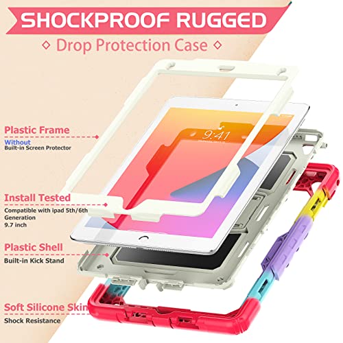 Custodia per iPad 6th / 5a generazione 2018/2017, iPad Air 2 Case 2014, iPad 9,7 pollici, custodia 3 in 1, resistente agli urti, robusta protezione iPad 5 6 Gen Cover con supporto per bambini rosso C