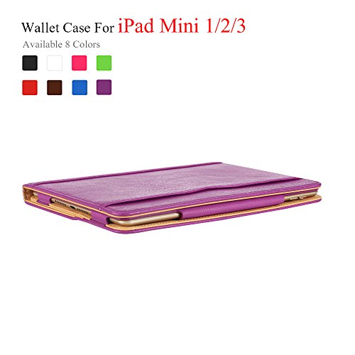 Custodia iPad Mini, iPad Mini 2, iPad Mini 3, cover pieghevole con supporto, in pelle sintetica, con angoli di visione multipli e tasca per documenti, funzione sonno/veglia automatica