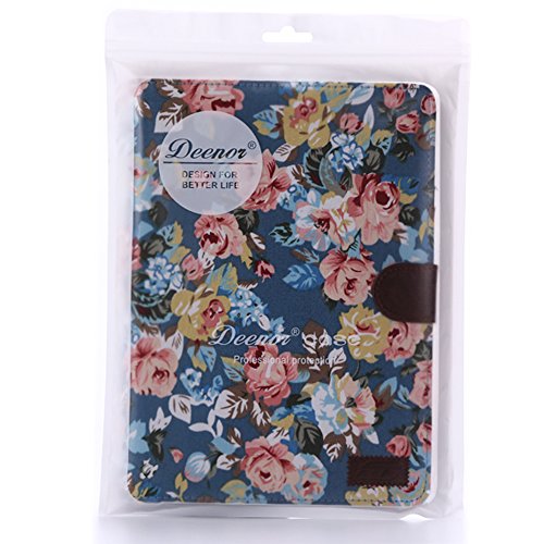Custodia per iPad Mini3, Deenor Retro Flowers Design Flip Custodia PU Pelle Stand Custodia Cover per Apple iPad Mini 1/2/3 Generation.(Blue Flowers)