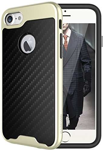 Custodia iPhone 7, CASEWIN Antiscivolo PU Cuoio Con Fibra Di Carbonio Del Modello Durevole Paraurti Assorbimento Di Scossa Con Estrema Protezione Slim Fit Caso Per iPhone 7 (4.7-pollici) - Nero + oro