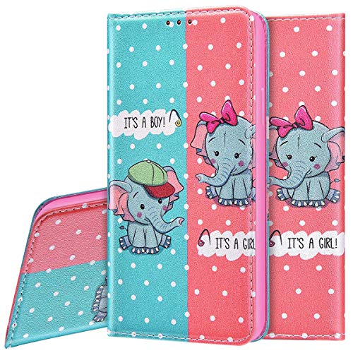 Custodia per iPhone 11,Cover a Libro per iPhone 11,Custodia in PU Pelle Portafoglio Antiurto Flip Case Porta Carte Funzione di Supporto Donne Protettiva Cover,Elefante