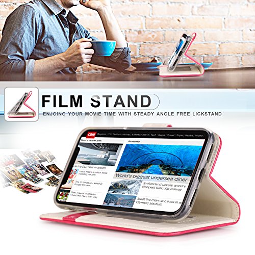 Custodia iPhone XS 5.8",Cover Portafoglio iPhone X,iPhone X Cover,Fyy [RFID Blocco Portafoglio]Custodia Manofatto Portafoglio Con Carte Slot per 5.8" iPhone XS/iPhone X/iPhone 10-Magenta