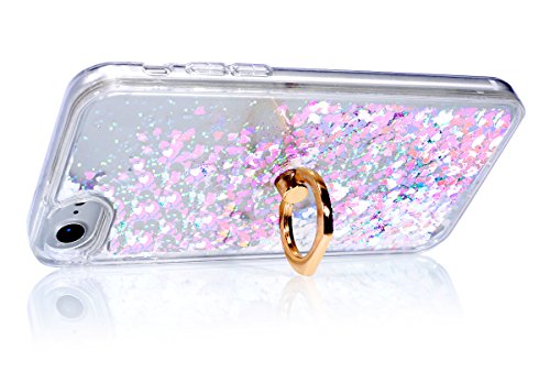 Custodia iPhone 5S Cover iPhone SE,Ukayfe Cristallo di lusso di Bling di scintillio lucido diamante scintilla iPhone 5S Case Copertura Custodia Cover [Cristallo Trasparente] Protettiva Trasparente con Liquido di flusso lucido diamante scintillante copertura dura di plastica trasparente con TPU Morbido Bordo Custodia Backcover Crystal Clear Case Custodia Cover con Built-in Rotazione Grip Ring Kickstand per iPhone 5/5S/SE-Rosa 5