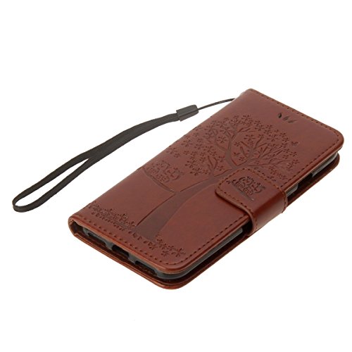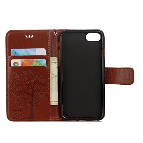 Custodia iPhone 7,Cover iPhone 8,Uposao iPhone 7/8 Custodia Cover Albero Gufo Fiore Modello [PU Leather] Protettiva Portafoglio Magnetico Flip Pelle Custodia e Silicone TPU Cover-(Marrone)