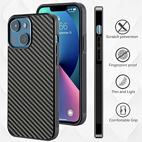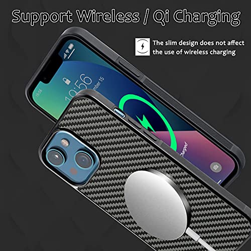 Custodia per iPhone 13 in fibra di carbonio, antiurto, antiscivolo, protezione in fibra di carbonio militare e telaio in morbido TPU, ricarica wireless, custodia da 15,1 cm per uomo e donna (nero)