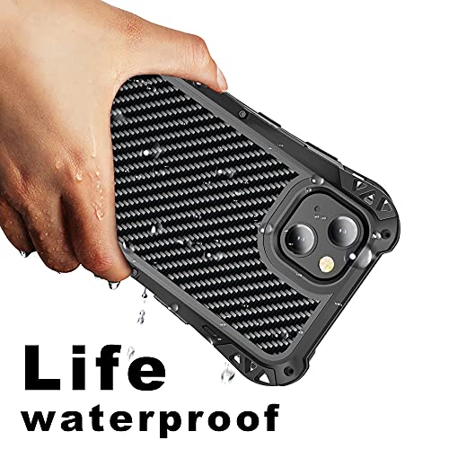 Custodia per iPhone 13 Pro Max [Fibra di Carbonio] Sottile Antiurto Anti-Impronte Digitali [Protezione Dalle Cadute] Ibrida in Lega di Zinco Silicio Cover con Vetro Temperato (Nero)