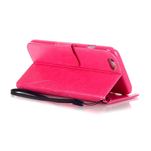 Custodia per Per iphone 6 6s,Funyye Per iphone 6/6s Pelle Libro Protettiva Copertura Con Cordino Shell Supporto Stand Porta Carte Portafoglio Flip Wallet Cover Chiusura Magnetica Proteggi Caso Elegante Fiori e Farfalle -Fucsia
