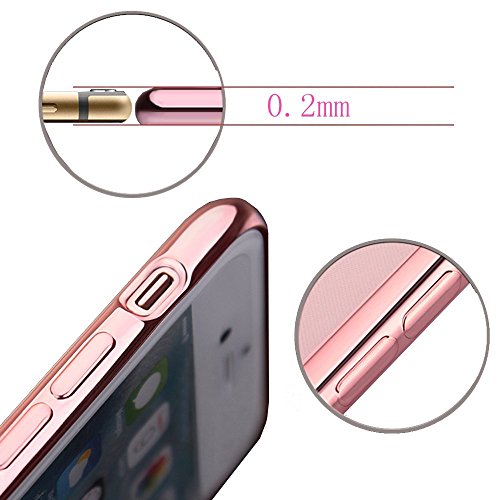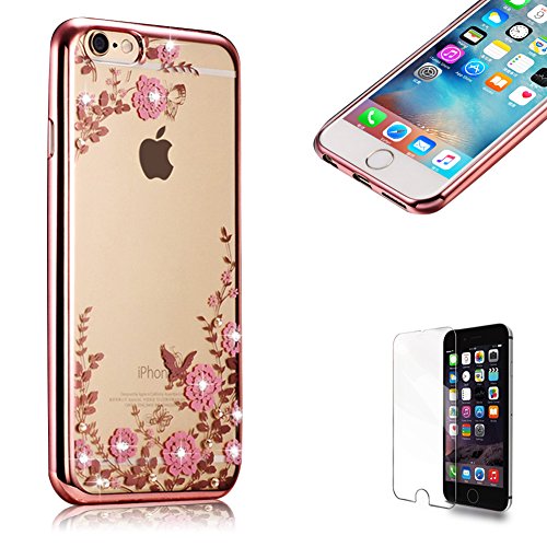 Custodia Per iphone 5 / 5s / se,Funyye Morbida Sottile TPU Gel Silicone Brillare Strass Cover Originale Elegante Protettiva Caso Trasparente Chiaro Antiscivolo Luce Placcatura Slim Thin Bling Glitter Skin Shell Copertura + Pellicola Protettiva Per iphone 5/5S/SE Soft Bumper Case - Rose Gold Fiori Rosa