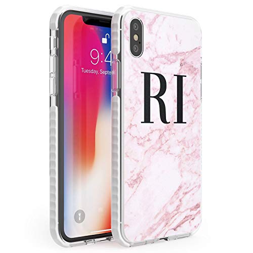 Custodia per iPhone XS MAX con iniziali personalizzate, in marmo bianco, antiurto, antiurto, a doppio strato, regalo minimalista