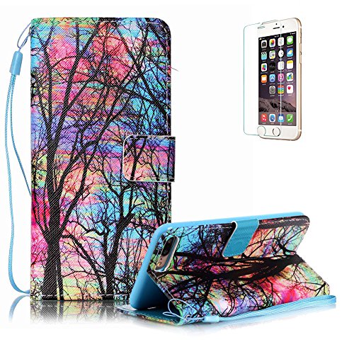 Custodia Per iphone 7 Plus in Pelle,Funyye Foresta Colorata Disegni Elegante Libro Portafoglio Cover e Pellicola Protettiva Copertura [CordinoPer iphoneSupporto StandPer iphonePorta CartePer iphoneChiusura Magnetica] Protettivo Caso Shell Skin Bumper Per iphone 7 Plus Flip Wallet Leather Case With Hand Strap Lanyard Screen Protector