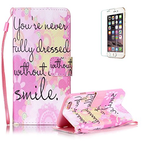 Custodia Per iphone 6 Plus / 6S Plus in Pelle,Funyye Smile Disegni Elegante Libro Portafoglio Cover e Pellicola Protettiva Copertura [CordinoPer iphoneSupporto StandPer iphonePorta CartePer iphoneChiusura Magnetica] Protettivo Caso Shell Skin Bumper Per iphone 6 Plus / 6S Plus Flip Wallet Leather Case With Hand Strap Lanyard Screen Protector