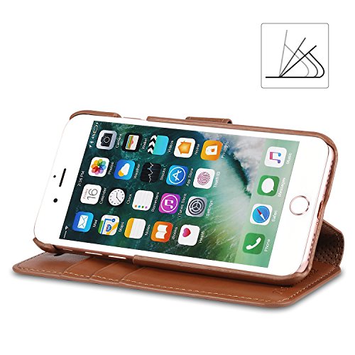 Custodia iPhone 7 Plus, TUCCH Cover in Pelle [GARANZIA DI VITA], [Pellicole Protettive], Supporto Stand, Carta Fessura e Protettiva Flip Wallet Case per iPhone 7 Plus, con Chiusura Magnetica, Marrone