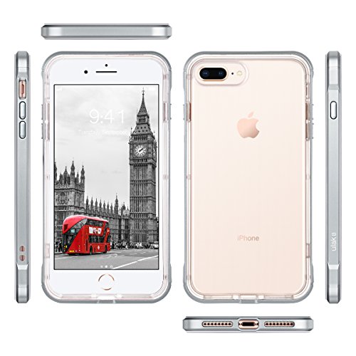 Custodia iPhone 7 Plus,ULAK iPhone 8 Plus Cover Ultra Sottile Metallico Bumper Frame Trasparente TPU Silicone Case Cover per Apple iPhone 7 Plus /iPhone 8 Plus (5.5 Pollici ) Protezione Ultralight Shell (Argento)