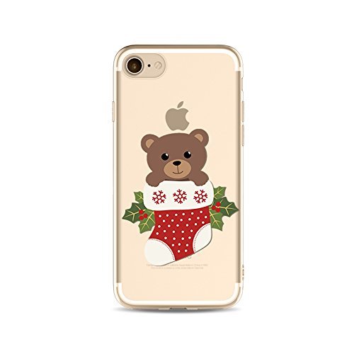 Custodia Per iPhone 7, Ruirs Nice Stampa di colori cute Christmas Theme ultra sottile transparente TPU Silicone Protettivo Skin Custodia Protettiva Shell Case Cover Per iPhone 7 4.7inchs (8 Sock Bear)