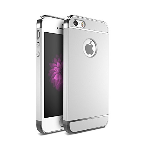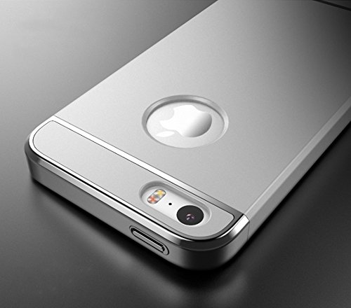 Custodia iPhone SE Custodia iPhone 5s Custodia iPhone 5 Silicone, Case Cover 3-in-1 Materiale + Placcatura Opaco plating Matte Material per iPhone SE/ iPhone 5s/ iPhone 5 Smartphone (argento)