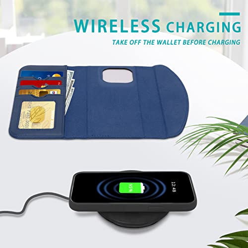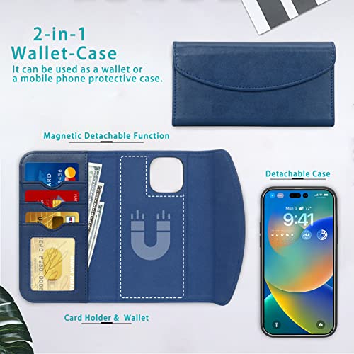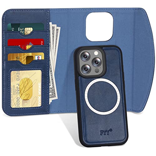 FYY Custodia per iPhone 14 Pro, con supporto per la ricarica magsafe], 2 in 1 custodia a portafoglio magnetica rimovibile con slot per carte per Apple iPhone 14 Pro 6.1" 2022, colore: Blu