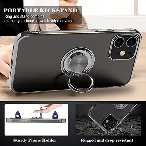 Custodia per iPhone 12 Pro Max, custodia ultra sottile in silicone trasparente anti-giallo con supporto ad anello da 360 gradi Custodia magnetica per auto da 6,7 pollici (Argento)