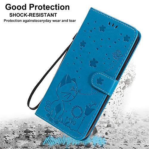 JZ [3D Cat & Bee Custodia for per LG K40S Protective Phone Wallet Flip Cover Custodia [Magnetic & Wrist Strap] - Green