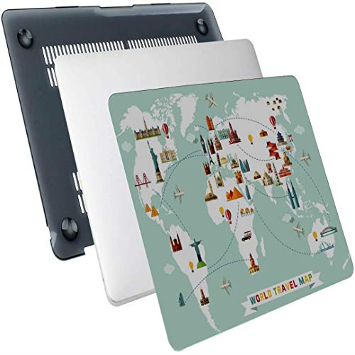 Custodia per laptop 13 pollici stampato fumetto mappa del mondo icona decorativa guscio rigido in plastica compatibile con Mac Air 13"Pro 13" / 16"custodia protettiva per Macbook per Macbook versio