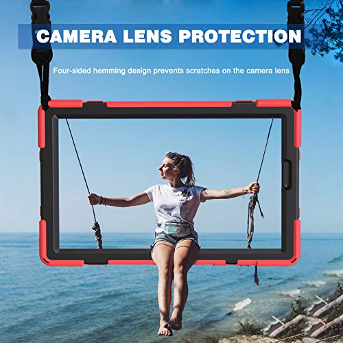 Custodia per Lenovo Tab M10 FHD Plus, 360 Rotante Supporto e Tracolla Custodia Robusta Ibrida Antiurto Cover Rigida Protettiva per Lenovo Tab M10 FHD Plus TB-X606F 10.3 Pollici, Rosso