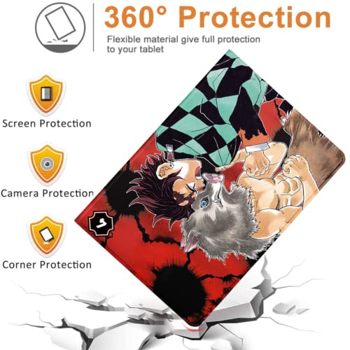 Custodia per Lenovo Tab M10 HD Gen 2(TB-X306X) 10.1'' Anime Demon Slayer Kamado Tanjirou Inosuke Tablet Cover Protezione Holder Flip in pelle PU con Funzione Supporto Soft Sottile Antiurto Backcover