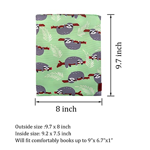Copertina per libro motivo bradipo, in tessuto, misura media e piccola, ideale come regalo per gli amanti dei libri e per adolescenti.
