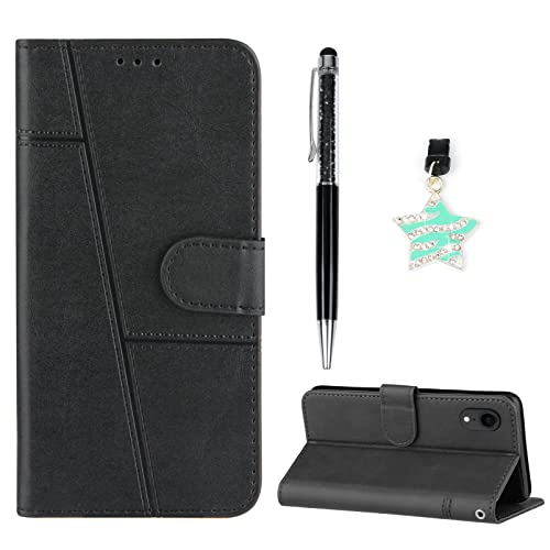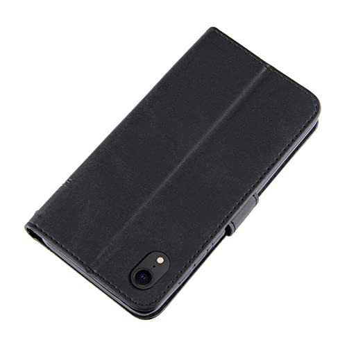 Custodia a libro compatibile per iPhone XR || interno in TPU con supporto per la visualizzazione e porta carte di credito || custodia a portafoglio in pelle con pennino capacitivo antipolvere - nero