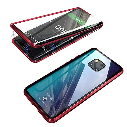 Custodia magnetica per Huawei Mate 20 Pro, con tecnologia di attrazione magnetica, cover frontale e posteriore in vetro temperato 9H, protezione completa a 360°, bumper in metallo ultra sottile, rosso