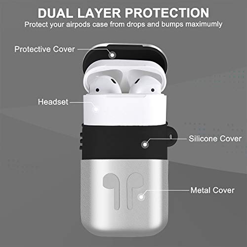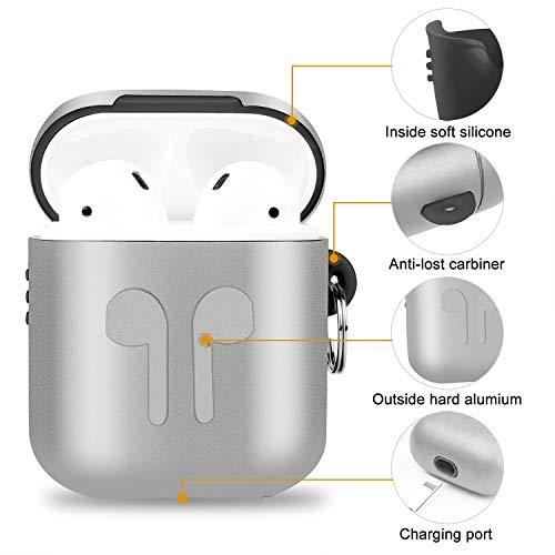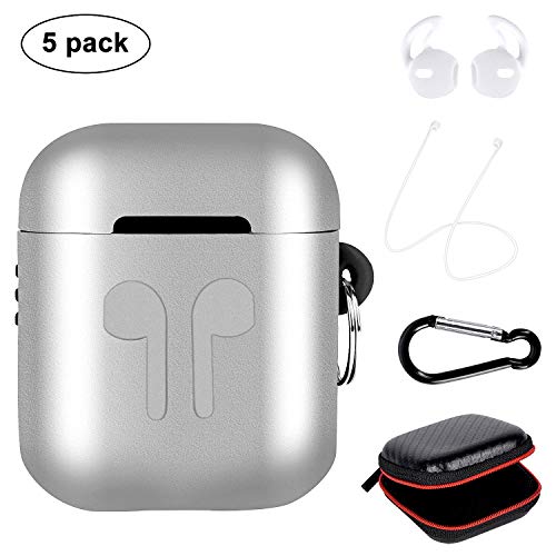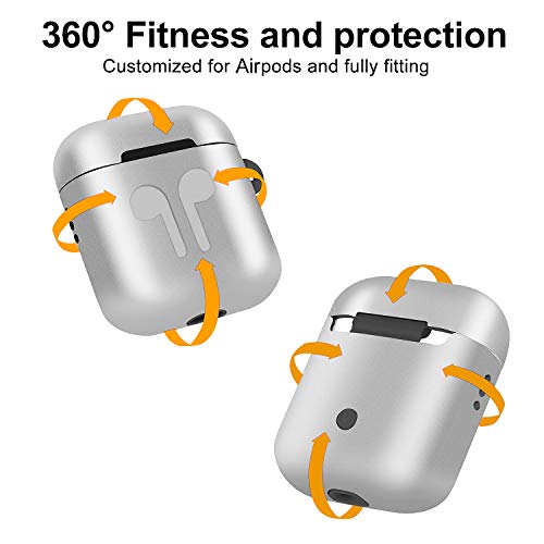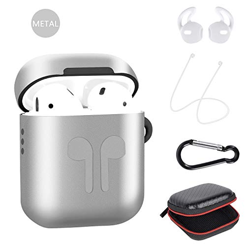 Custodia in Metallo Airpods, Nuova Copertura Protettiva Completa Accessori Kit per Airpods Apple con Copertura, Auricolari, Moschettone, Cinturino anti-smarrimento, Custodia per accessori - Argento