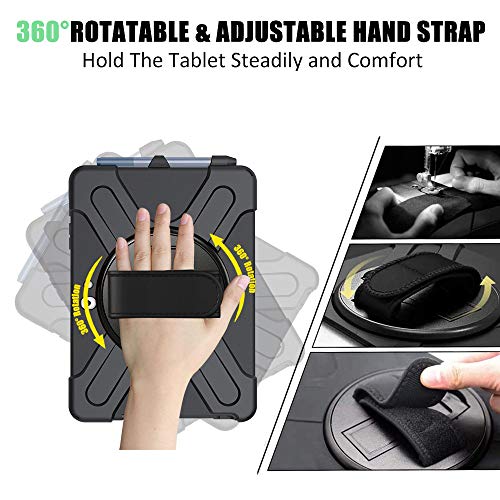 Custodia per Microsoft Surface Go 3, Surface Go 2, Surface GO, antiurto e resistente, con Girevole a 360 Gradi Supporto, cinghia da polso, portapenne e tracolla, Nero