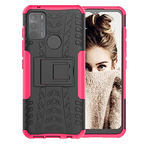 Custodia per Motorola Moto G50 Posteriore Case Silicone Misto Doppio Strato Resistente Armor Copertura Bumper TPU Morbido Antiurto Bumper Case Protettiva Staffa Cover per Moto G50-Rosa rossa
