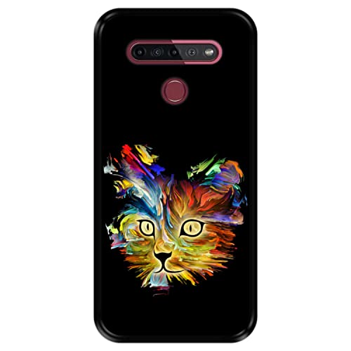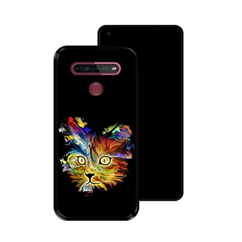 Custodia nera per LG K41S - K51S, design [Ritratto di Gatto in colori brillanti] Cover in silicone flessibile TPU