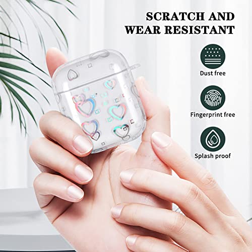 Custodia Newseego Compatibile con Airpods 1&2,Custodia Airpods 1&2 con Design a Cuore Laser Trasparente Custodia Protettiva in TPU Morbido con Portachiavi Argento Custodia di Ricarica per Airpods 1&2