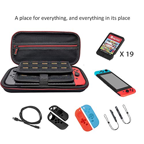 Custodia per Nintendo Switch,Case Rigido da Viaggio Versione Aggiornata Custodia con più Spazio per 19 Cartucce, Caricabatteria Originale e altri Accessori per Nintendo Switch