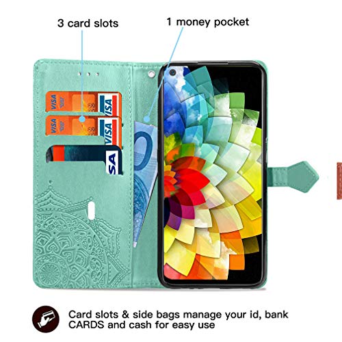 Custodia per Nokia G20/Nokia G10 Cover Portafoglio Retro Flowers Design Pattern Cover Pelle Flip Wallet Case Cover Protettiva per Nokia G20/Nokia G10-Verde