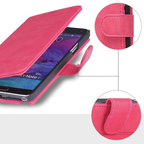 Custodia Note 4, TUCCH Custodia in Pelle, in Piedi la Vista Diario Custodia Copertura di Vibrazione Portafoglio Flip Cover con Chiusura Magnetica per Samsung Galaxy Note 4 - Caldo Rosa