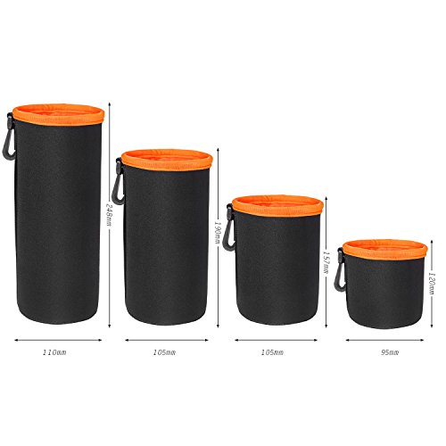 Custodia per obiettivo, Accevo 4-pack protettiva impermeabile Lens set di custodia in neoprene per obiettivo fotocamera DSLR (Canon, Nikon, Pentax, Sony, Olympus, Panasonic)