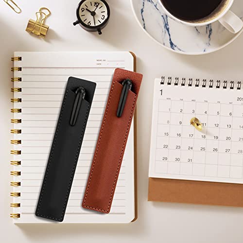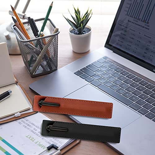 Custodia in Pelle per Penna, 4 Pezzi in Pelle Portapenne, Astuccio in Pelle per Penne a Sfera, Custodia Protettiva Morbida per Penna Touch,Penna a Sfera,Matite, (Nero e Marrone),con 1 Penna a Sfera