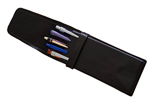 Custodia in pelle per 5 penne stilografiche, pennini e matite, in vera pelle e di colore nero