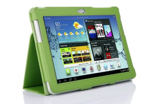 Custodia eco pelle per Samsung Galaxy Tab 2 10.1 GT P5100 P5110 Portfolio Tablet Custodia slim Book Cover Case integrale Verde più Pennino e Pellicola Omaggio