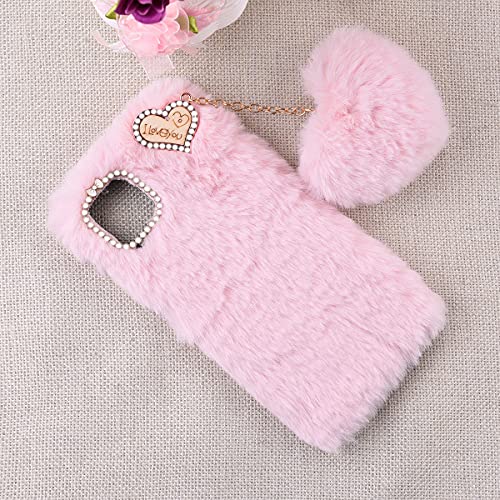 Custodia Peluche per Galaxy A22 4G Carino Morbido Peloso Ciondolo Love Inverno Soffice Caldo Hairball Cover Protettiva Fluffy Cover Bambine Fatto a Mano Copertura Caso per Samsung Galaxy A22 4G, Rosa