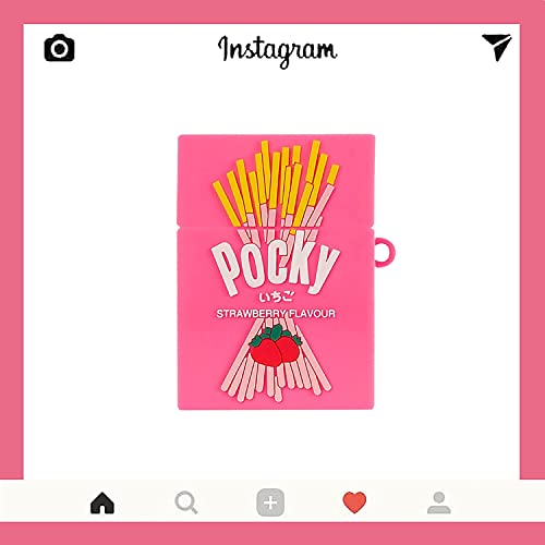 Custodia Pocky Cute per Airpods 1&2: NANTING Copertura Protettiva in Silicone Biscotto 3D con Portachiavi Rosa con Orsetto Gommoso