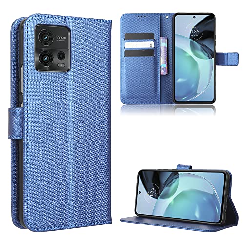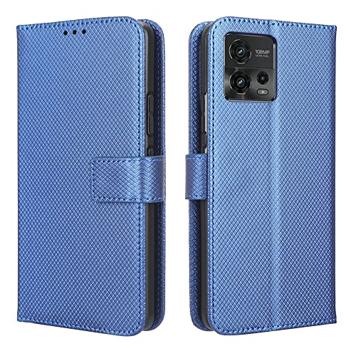 Custodia a portafoglio per cordino, compatibile con Motorola G72 G 72 MotoG72 4G flip cover antiurto magnetica tinta unita per telefono aziendale (blu, Motorola G72 4G)