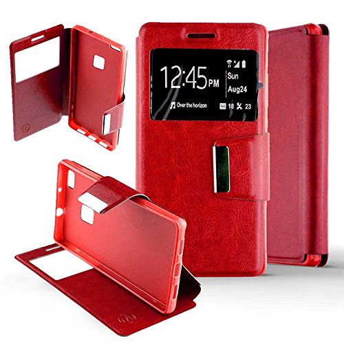 Custodia a portafoglio per Huawei P10 Lite, con finestra in similpelle, colore: rosso